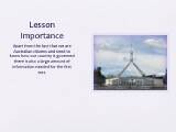 This lesson is about the Federal Government in Australia, it includes views of inside the parliament and notes and information on the role of the Federal Parliament