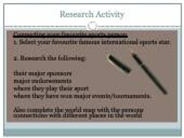 Lesson 22 - Year 9 Geography- Connecting your favourite Sports Person - research
