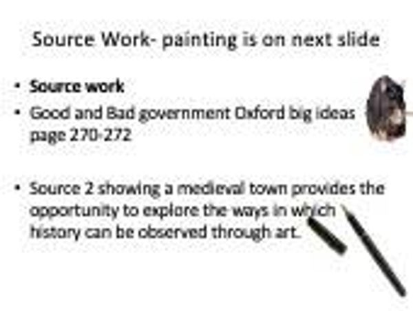 - Source 2 showing a medieval town provides the opportunity to explore the ways in which history can be observed through art.